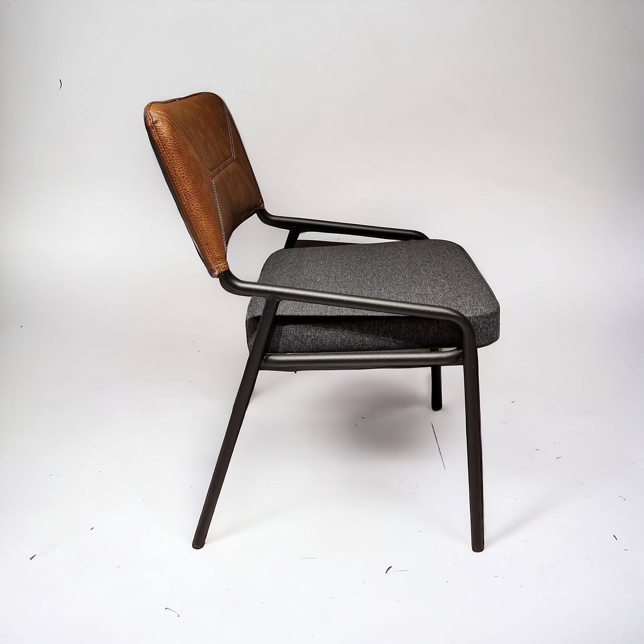 Unser Esszimmerstuhl ohne Armlehne vereint Komfort und Stil auf elegante Weise. Mit einer Rückenlehne aus hochwertigem Leder, einem bequem gepolsterten Sitz aus qualitativem Stoff und eleganten Metallfüßen ist dieser Stuhl die perfekte Wahl für Ihr Esszimmer.