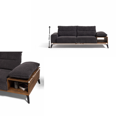 Sofa mit Couchtisch Class (3-Sitzer), Unser praktischer Sessel mit 3 Sitzplätzen bietet nicht nur ausreichend Platz zum Entspannen, sondern verfügt auch über einen integrierten Couchtisch aus Holz auf einer Seite. Hier sind die herausragenden Merkmale dieses einzigartigen Möbelstücks: