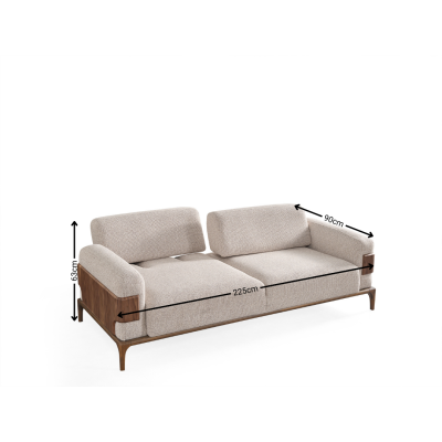 • Ein weiteres Merkmal, das das Talia-Sofaset auszeichnet, ist sein unterer Teil aus Holz, der mit den Füßen verbunden ist. Diese Konstruktion trägt nicht nur zur Stabilität bei, sondern unterstreicht auch die Langlebigkeit des Sets. Jedes Detail wurde mit höchster Sorgfalt und Präzision gestaltet, um Ihnen ein Möbelstück von herausragender Qualität zu bieten, das Ihnen über Jahre hinweg Freude bereitet.