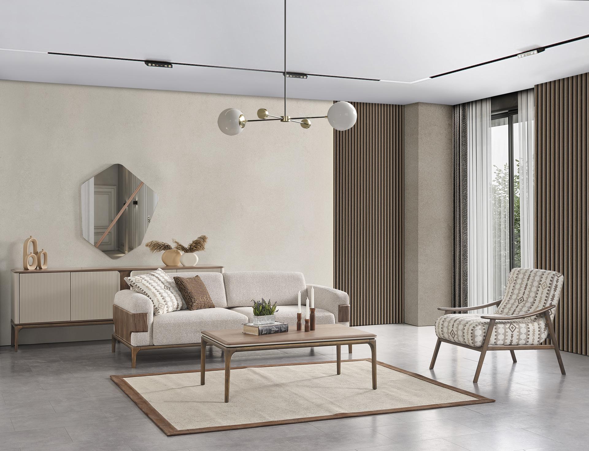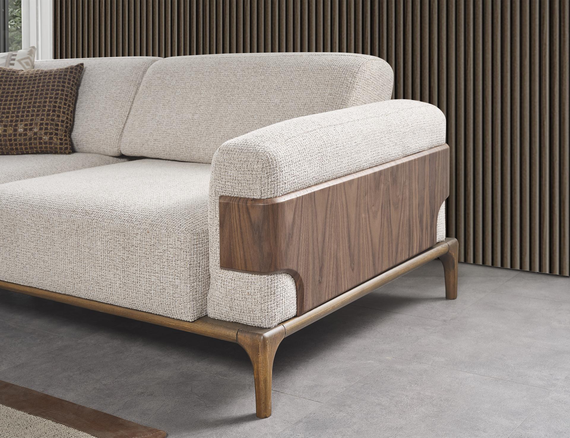 • Das Talia-Sofaset definiert Eleganz und Funktionalität neu. Mit seinen innovativen Rückenlehnenmechanismen bietet es ein individuell anpassbares Sitzerlebnis, das den Komfort maximiert. Doch nicht nur das – die Holzdetails an den Seiten verleihen diesem Set eine ästhetische Raffinesse, die jeden Wohnraum aufwertet.